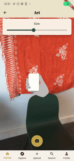 Through the AR feature, fan artworks can also be visualized as wall tapestries, allowing users to place, adjust, and experience the artwork within real-world environments.