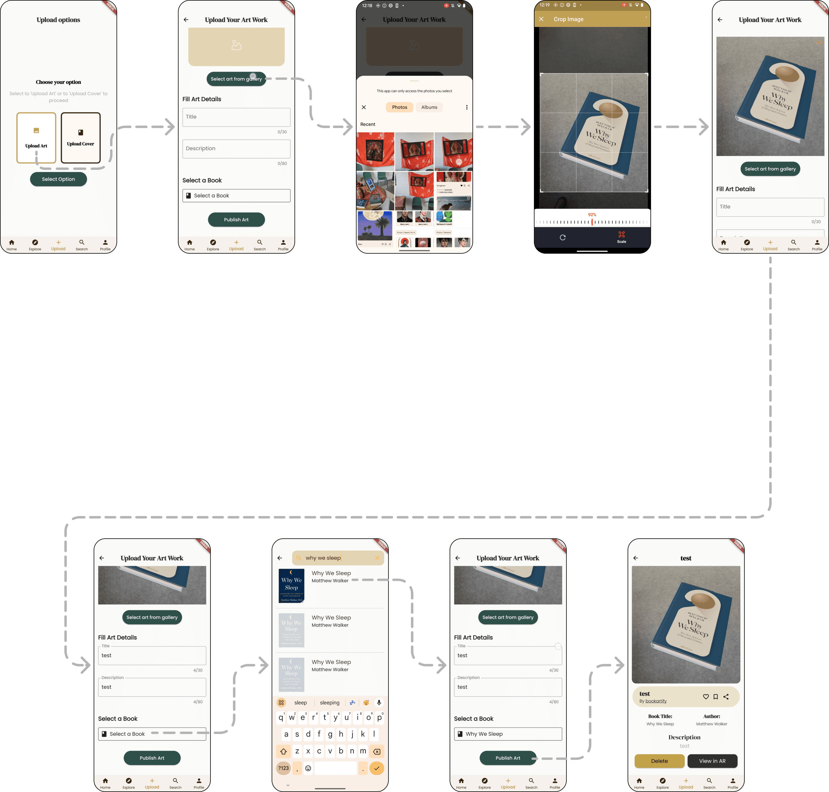 Alongside front-end development in Flutter, I contributed to designing the app logo, developing the splash screen, defining the user persona, refining the user flow, and creating promotional banners. These efforts ensured a cohesive visual identity and seamless user experience across BookARtify.