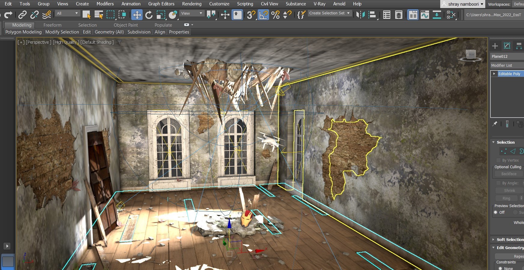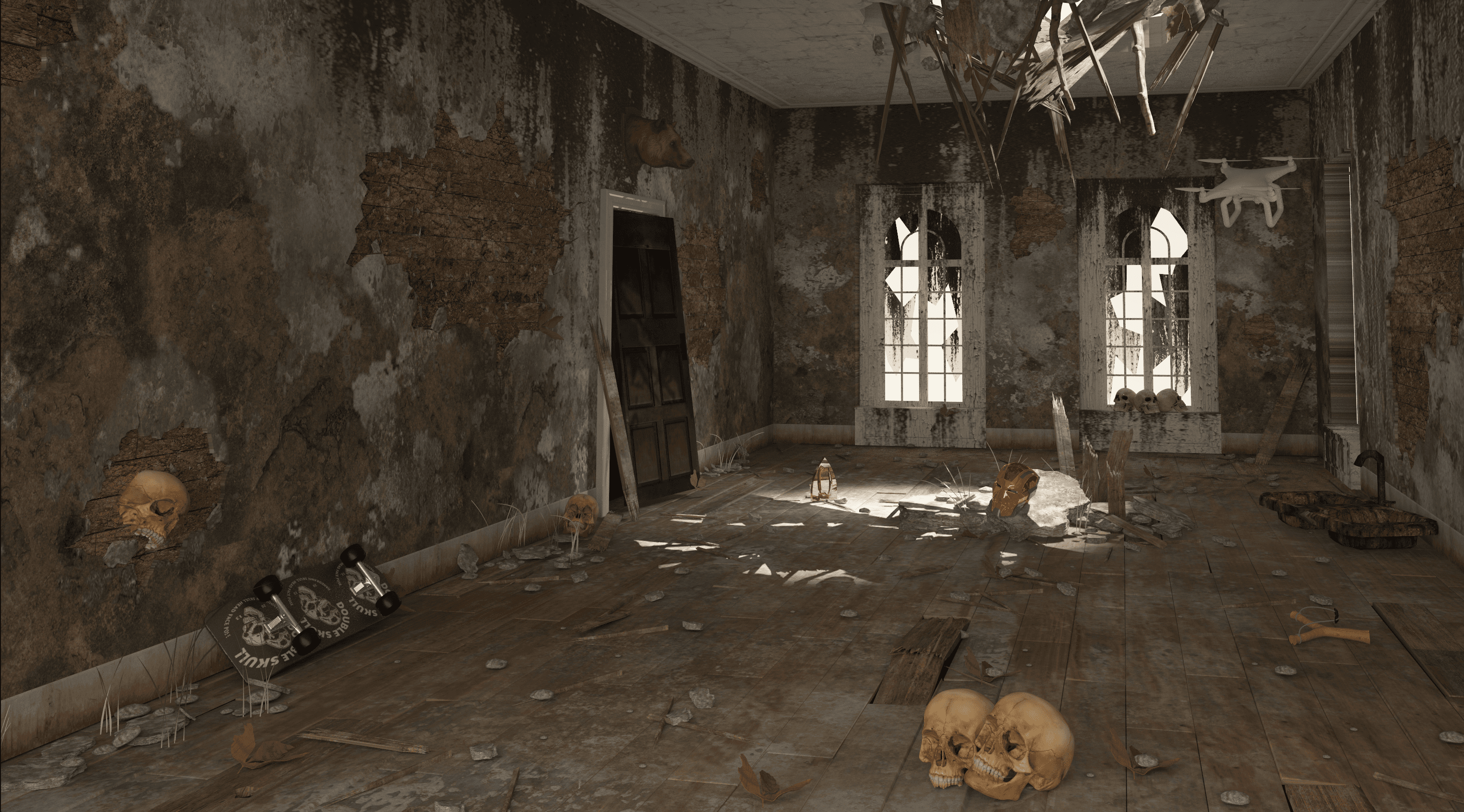 This project explored 3D modelling and rendering through the creation of a hidden-object style environment. Using 3ds Max and V-Ray, I modelled and textured objects such as a slingshot, skateboard, drone, and Iron Man helmet, then integrated them into a haunted, abandoned room setting. The focus was on realism, camouflage, and scene composition—skills that translate into developing immersive assets for games, marketing visuals, or experiential brand content.